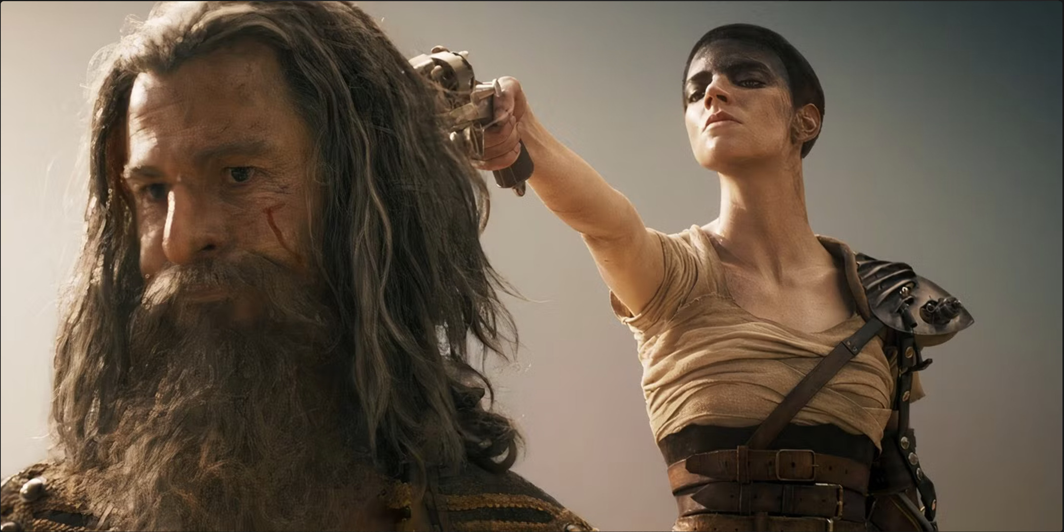 One interesting aspect of Furiosa: A Mad Max Saga is that there’s no doubt as to how it will end. We’ve already seen our heroine burn the system to the ground, and the satisfaction of that can’t be repeated. By giving us a prequel nearly ten years later, George Miller is trying to hone in instead on why she tore it down, the spark that ignited her rebellion. The answer, as Anya Taylor-Joy plays it, is simple. Furiosa pays attention. Wide-eyed and nearly silent, she spends much of the runtime observing the misery around her: the unjust status quo preserved by the stubborn Joe (Lachy Hulme) in power and the chaotic vulgarity of the demagogue Dementus (Chris Hemsworth) who aims to take his place. The Wasteland is merciless, albeit strangely familiar, and what it’s taken from her won’t be restored. Nothing she does will ever balance the scales, a truth Dementus is keen to wield against her. But what is left to do when the damage is irreparable? Slap on a prosthetic clown nose and make a heel turn into cynicism? Shrug and walk away as things get worse? If the idyll of her childhood no longer exists, she can still rally everything she has in its direction.