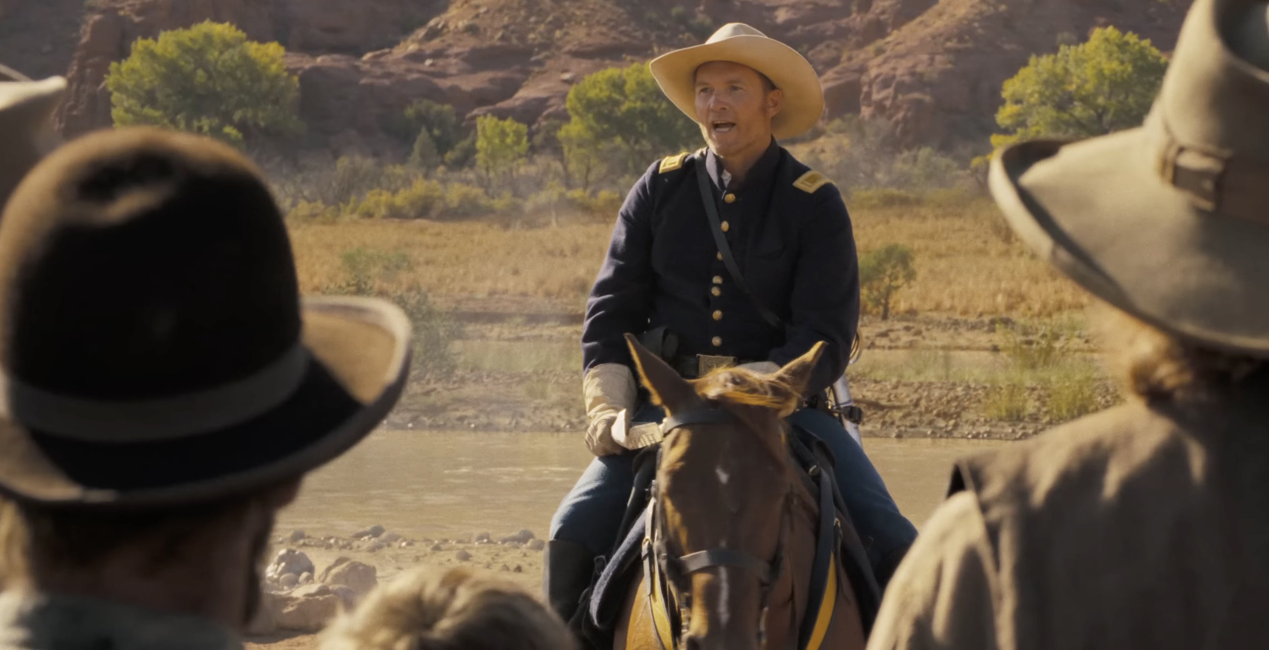 Instead, we’re simply presented the beginning of five or six almost entirely disconnected storylines. There’s Frances Kitteridge (Sienna Miller), a mother who is forced to create a new life for her family after her home is attacked by Apaches. There’s Hayes Ellison (Costner), a mysterious lone traveler who enters a Wyoming town and becomes enmeshed in their affairs. There’s a wagon train led by Matthew Van Weyden (Luke Wilson). There’s also a schism within a Native American tribe, a rogue group hunting said Native Americans, a Union army group led by Col. Houghton (Danny Huston) and Sgt. Major Riordan (Michael Rooker)—and yes, I had to look up every single name I just listed to know who they were. Even at a three hour runtime that felt like six, there is entirely too much happening in Horizon to keep track of.