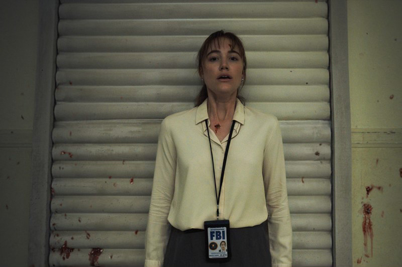 Longlegs tells the story of Lee Harker (Maika Monroe), an FBI agent who tries to catch a suspected serial killer named Longlegs (Nicolas Cage), ostensibly responsible for multiple family murders. Writer/director Osgood Perkins does a fantastic job creating an unsettling atmosphere throughout. Pretty much the entire film is created using mid- to wide-angle shots, putting the viewer in the uncomfortable position of seeing way more of the frame than they are use to — the eye basically begs for a close-up, and by denying us, Perkins ramps up the tension subconsciously. Monroe puts in a gripping, understated performance as Harker, who we learn early on might be haunted by possibly psychic abilities.