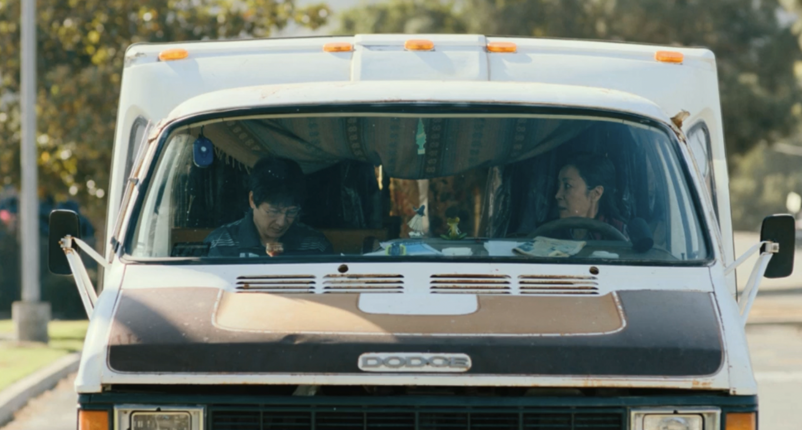 Scheinert: We shut down as COVID numbers were going up, but there wasn't a lockdown yet, but we shut down with one more day of shooting, still left. And so then we had to do some pickup shoots, one of which is Ke Quan and Michelle Yeoh discussing divorce in the family RV. But Ke lived in LA and Michelle was in Europe and Covid was raging. And so we shot it in my least favorite style of filmmaking where the actors weren't there.