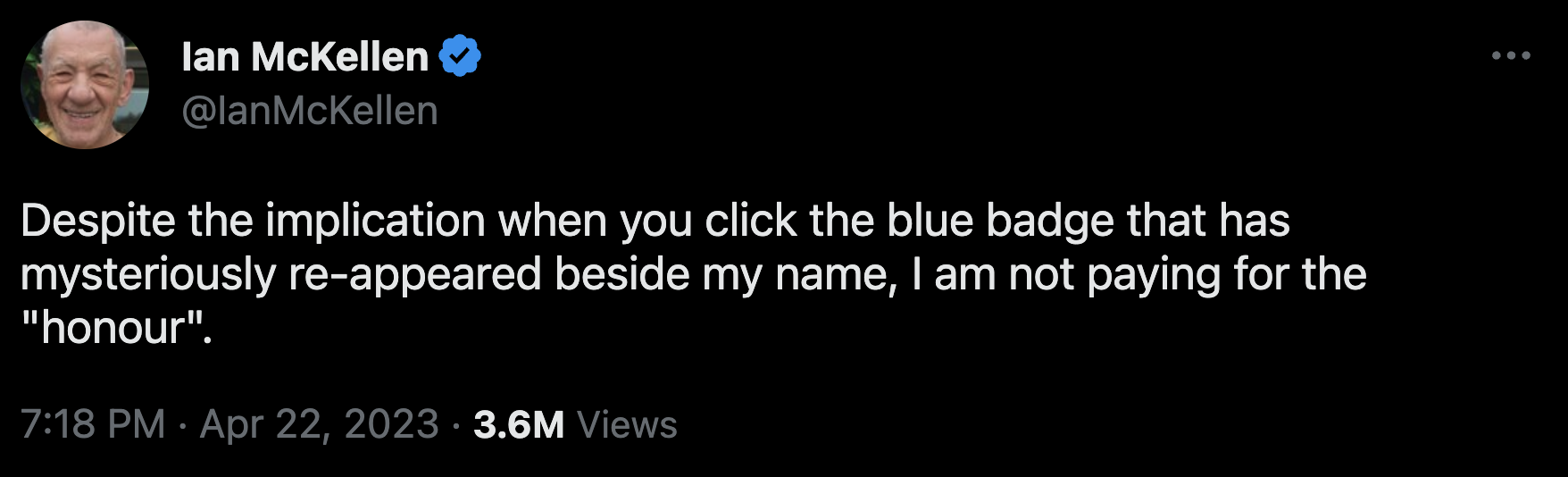 One of the most interesting results has been how celebrities have reacted to these changes. Many celebrities said that they would be leaving Twitter because they feared impersonation and refused to pay for a subscription for Twitter Blue. The blue check no longer served its primary and most important function of proving who its owner was — it was instead merely a signifier that you’re willing to pay Elon Musk $8/month (and/or maybe you just enjoy some of Twitter Blue’s features). Whatever prestige the blue checkmark might have conferred in the past, Musk and his cronies have managed to flush it down the toilet within a few short months.